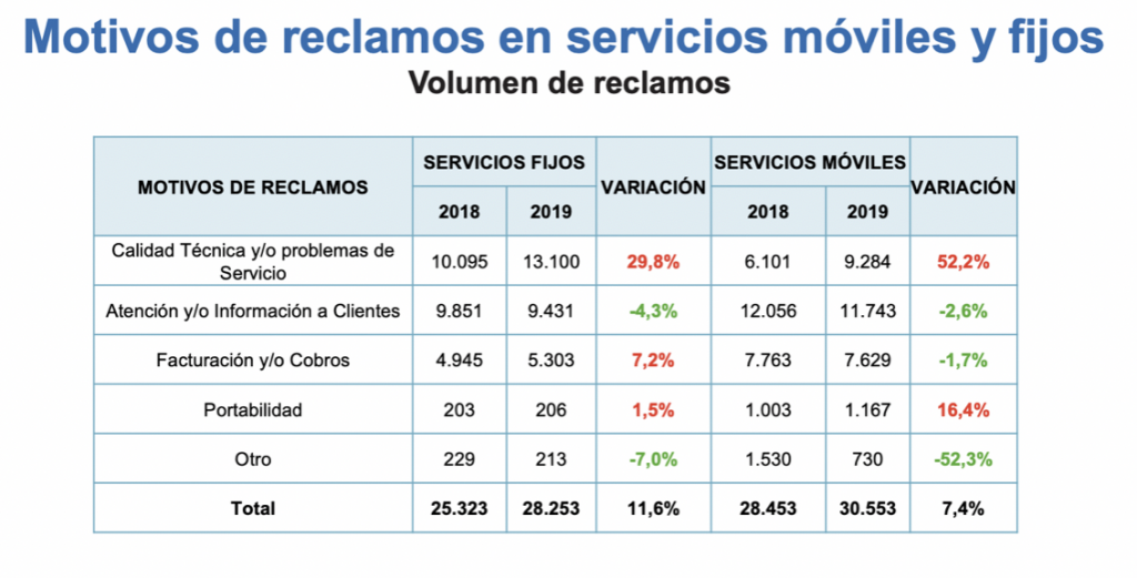 • Los reclamos se concentran principalmente en la calidad técnica y/o problemas de servicio.