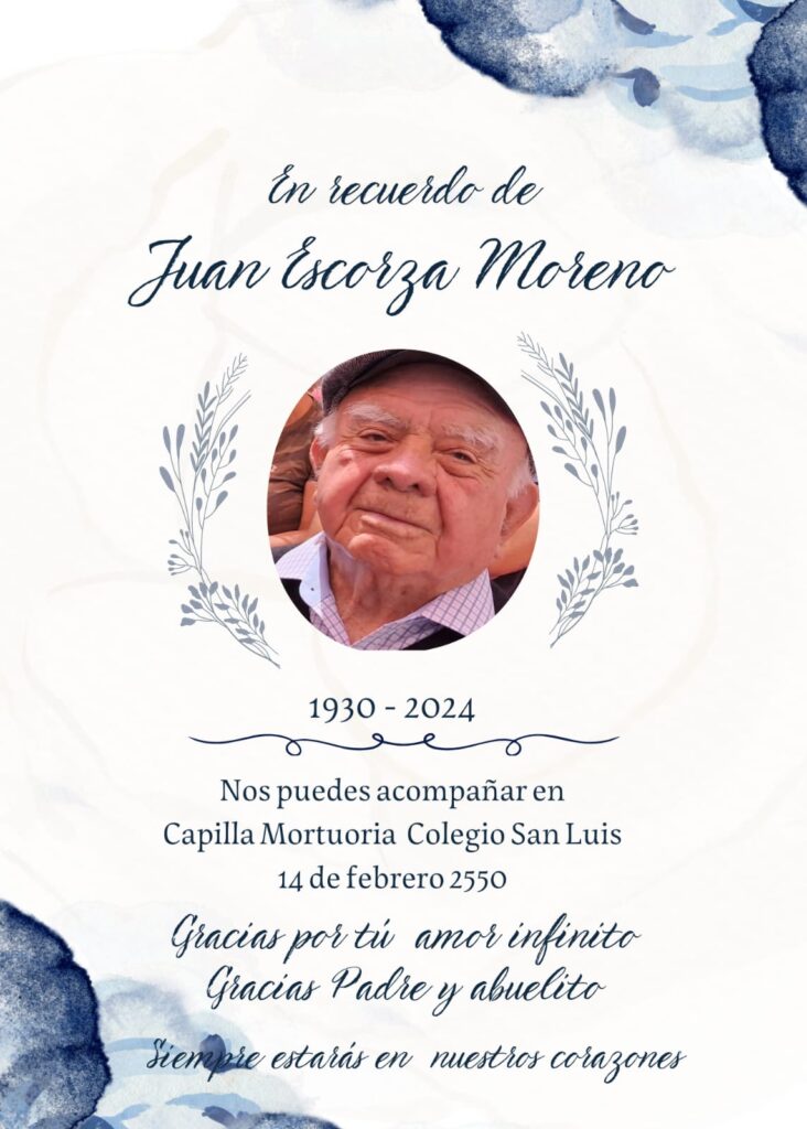 Profundo pesar y dolor causó el fallecimiento de don Juan Escorza Moreno (Q.E.P.D.), un pampino destacado en el trabajo, el deporte y la convivencia social. Murió a los 94 años.
