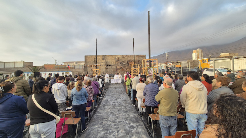 Durante el fin de semana recién pasado, y en el sitio donde se levantaba la iglesia, la comunidad realizó por primera vez una eucaristía, marcada por la esperanza y los signos del proceso de reconstrucción: plantas del nuevo jardín, una cruz fabricada con madera del lugar y una campana rescatada entre las cenizas.