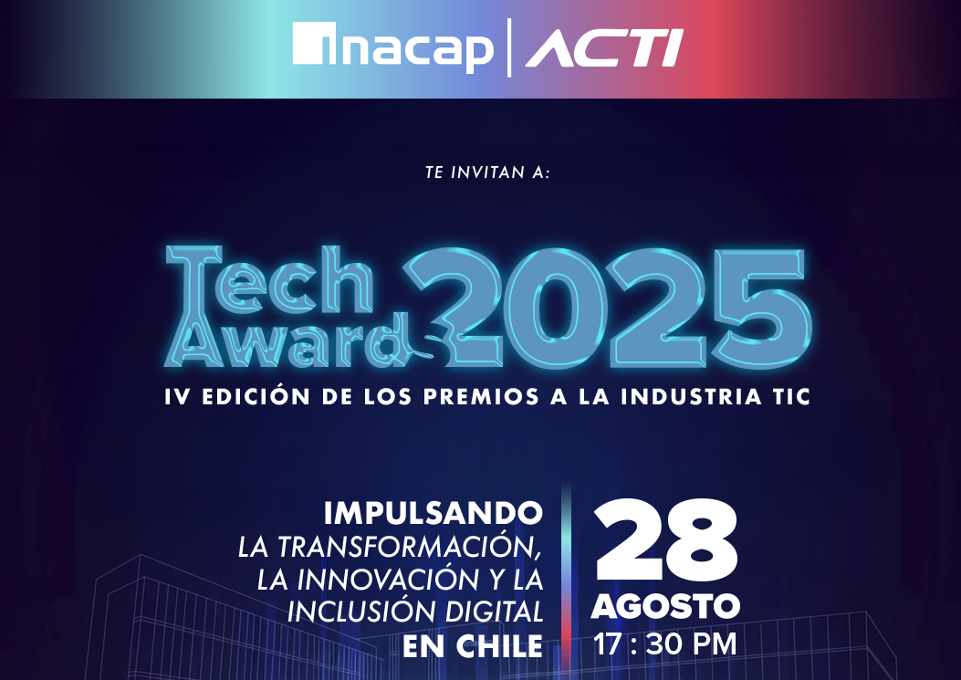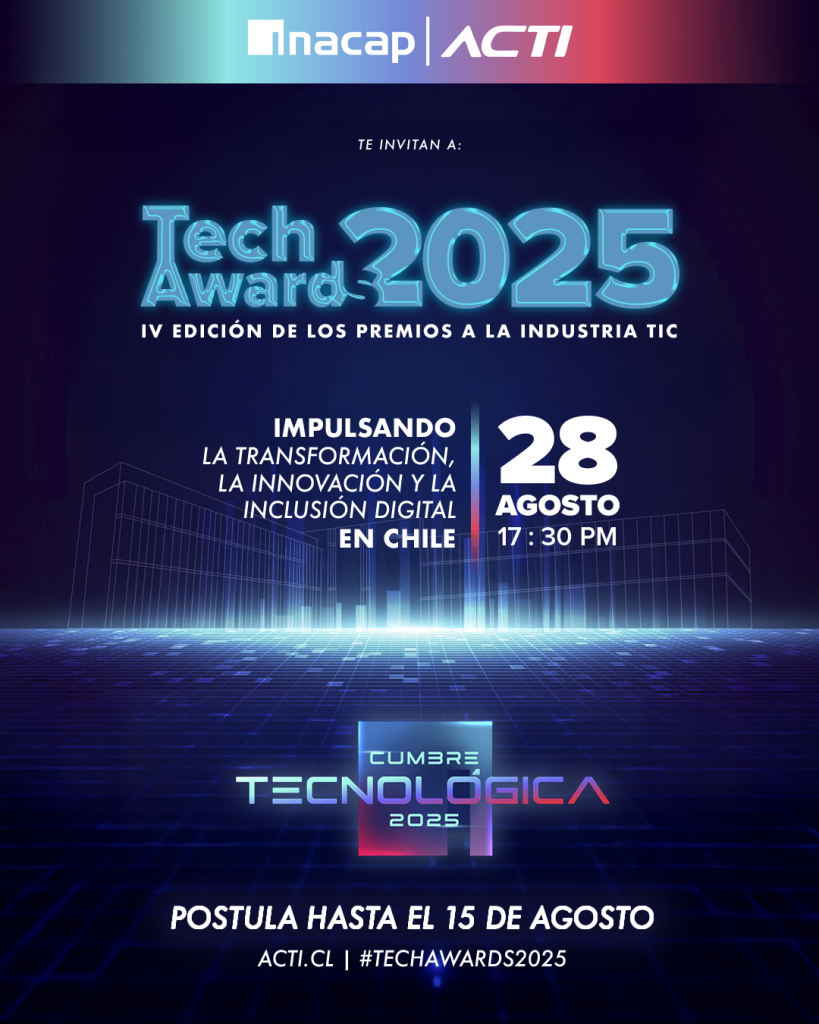 La Asociación Chilena de Empresas de Tecnologías de Información (ACTI A.G.) anunció la cuarta edición de los Tech Awards, premio que reconoce el desarrollo, la innovación, el emprendimiento y el impacto de las tecnologías de la información y comunicaciones (TIC) en Chile. Esta edición 2025 incorpora novedades relevantes que reflejan la evolución del ecosistema digital nacional, consolidando al certamen como una vitrina clave para destacar iniciativas con alto potencial transformador.