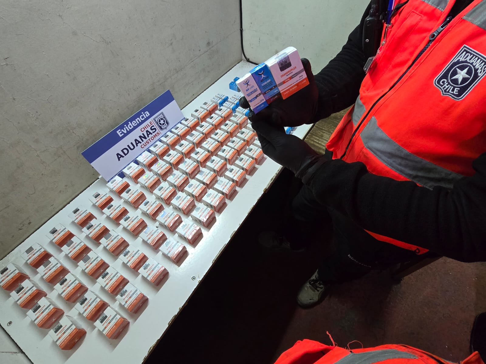 La detección se registró durante un circuito de revisión a los camiones que entran y salen de la región de Tarapacá. En dicho contexto y gracias a la experticia de los funcionarios, se identificó una caja que estaba oculta y que en interior contenía frascos con versiones sintéticas de testosterona.