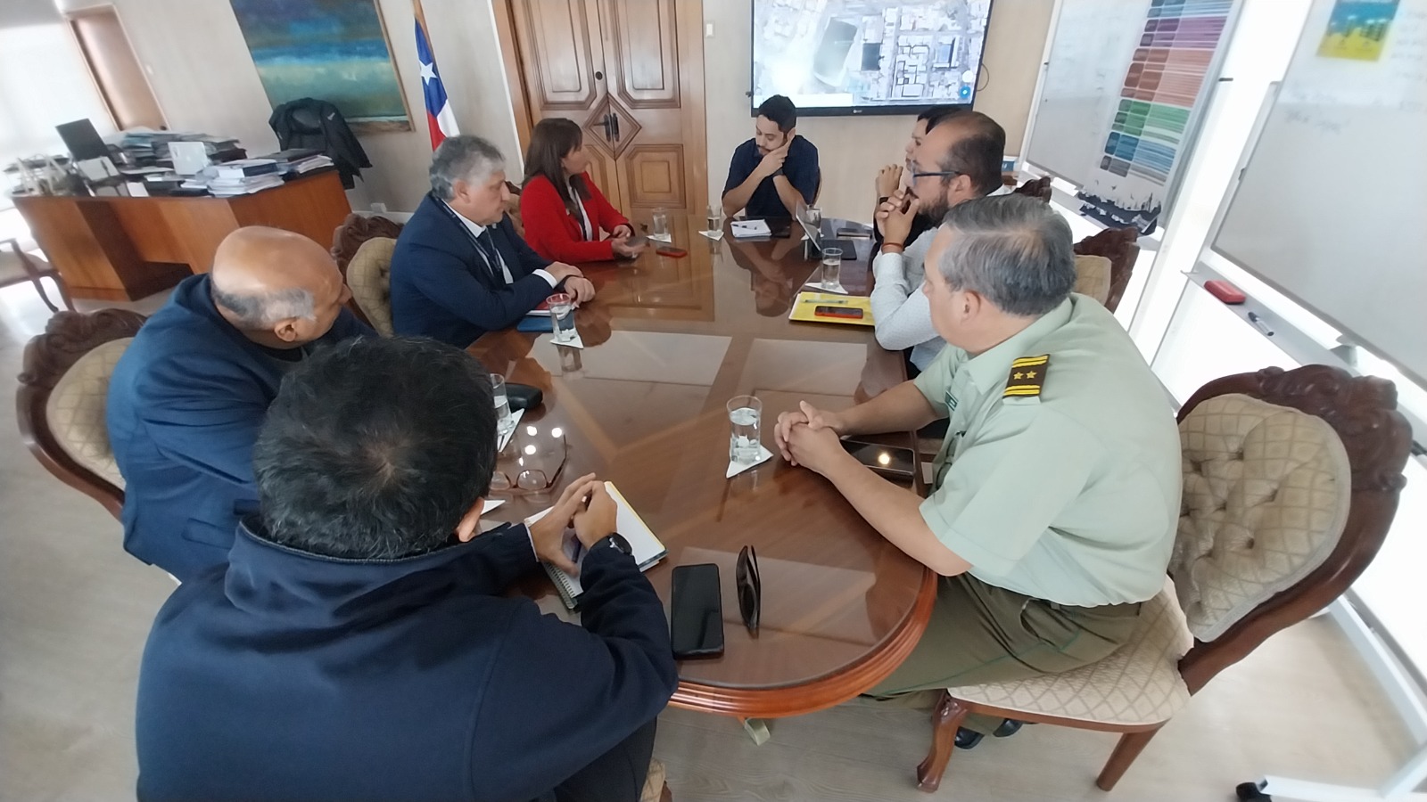 Durante el encuentro también participaron los Seremis del MOP y Bienes Nacionales, Juan Papic Vilca y Osvaldo Ardiles, respectivamente; el Director de Arquitectura del Mop, Edinson Jara; y el Jefe de Zona de Carabineros, General Juan Francisco González, quienes dialogaron sobre inversiones en materia de seguridad.