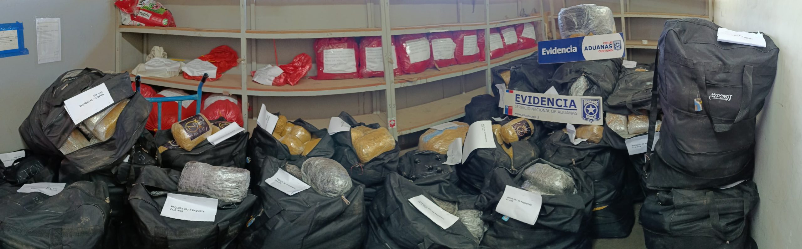 En total los fiscalizadores hallaron 48 bolsos que en su interior contenía 1.263 paquetes con un total de 1.387 kilos de marihuana, además de 10 paquetes con un total de 10 kilos 415 gramos de clorhidrato de cocaína de alta pureza y una bolsa con 105 gramos de ketamina.