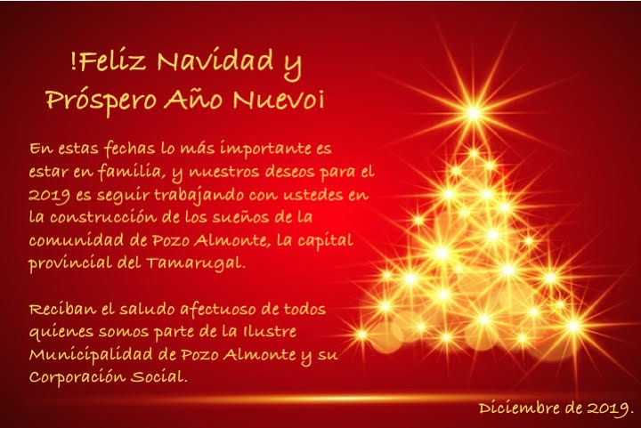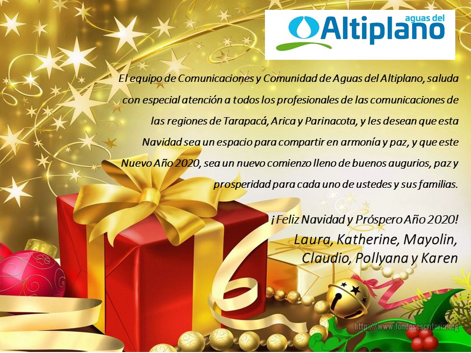 Estamos muy agradecidos deseándoles a todos una Feliz Navidad y un 2020 colmado de salud, armonía, concordia y trabajo. Muchas gracias.