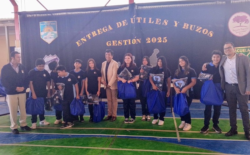 En una significativa ceremonia realizada en la Escuela Vertiente del Saber, el alcalde de Pica, Iván Infante Chacón, hizo entrega oficial de buzos y útiles escolares a todos los establecimientos educacionales de la comuna, beneficiando directamente a cientos de estudiantes y sus familias.