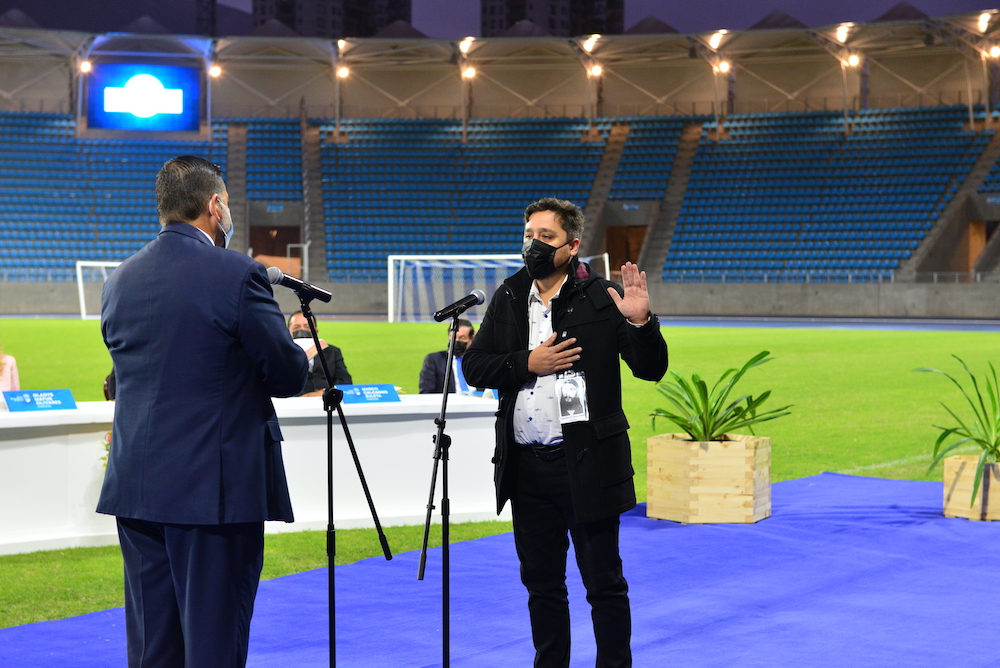 En una sencilla ceremonia y con los resguardos sanitarios necesarios, en el Estadio Tierra de Campeones «Ramón Estay», se realizó ayer, a partir de las 18.00 horas, la ceremonia de asunción del alcalde de la comuna y de los diez integrantes el Concejo Municipal de Iquique.