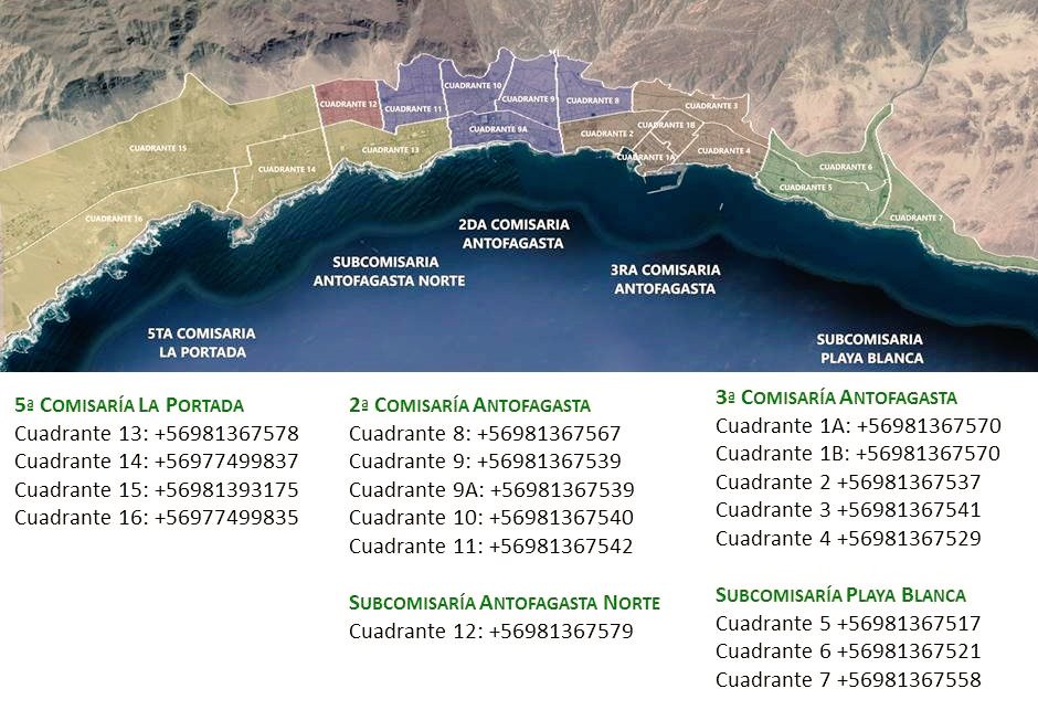 Aquí te compartimos los números de los Cuadrantes de Antofagasta y recuerda guarda en tu celular el contacto para que puedas acceder de manera más rápida.