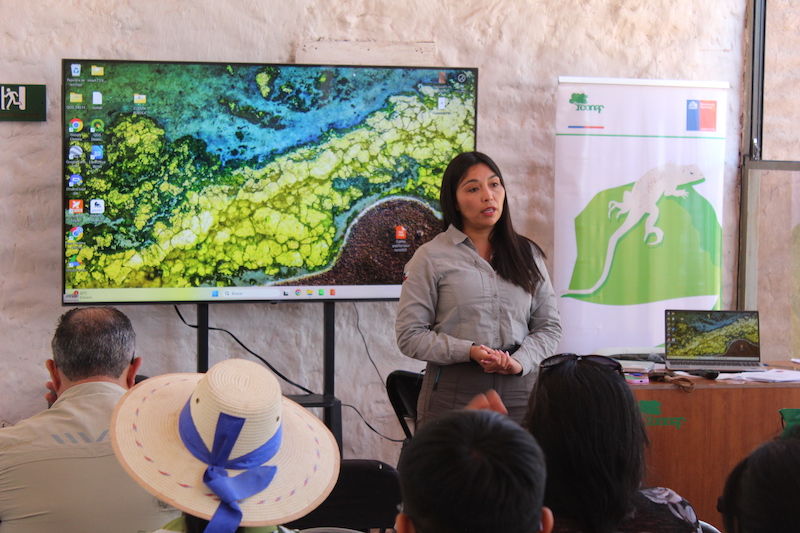 La presentación principal estuvo a cargo de Ángela Troncoso, administradora del Parque Nacional Volcán Isluga, quien dio cuenta del avance en monitoreo técnico, prevención de amenazas ambientales y coordinación con actores locales. Asimismo, se desarrolló la Cuenta Pública de la Comunidad Indígena Aymara de Jaiña y de la Junta de Vecinos, consolidando el carácter participativo y comunitario del proceso de rendición de cuentas