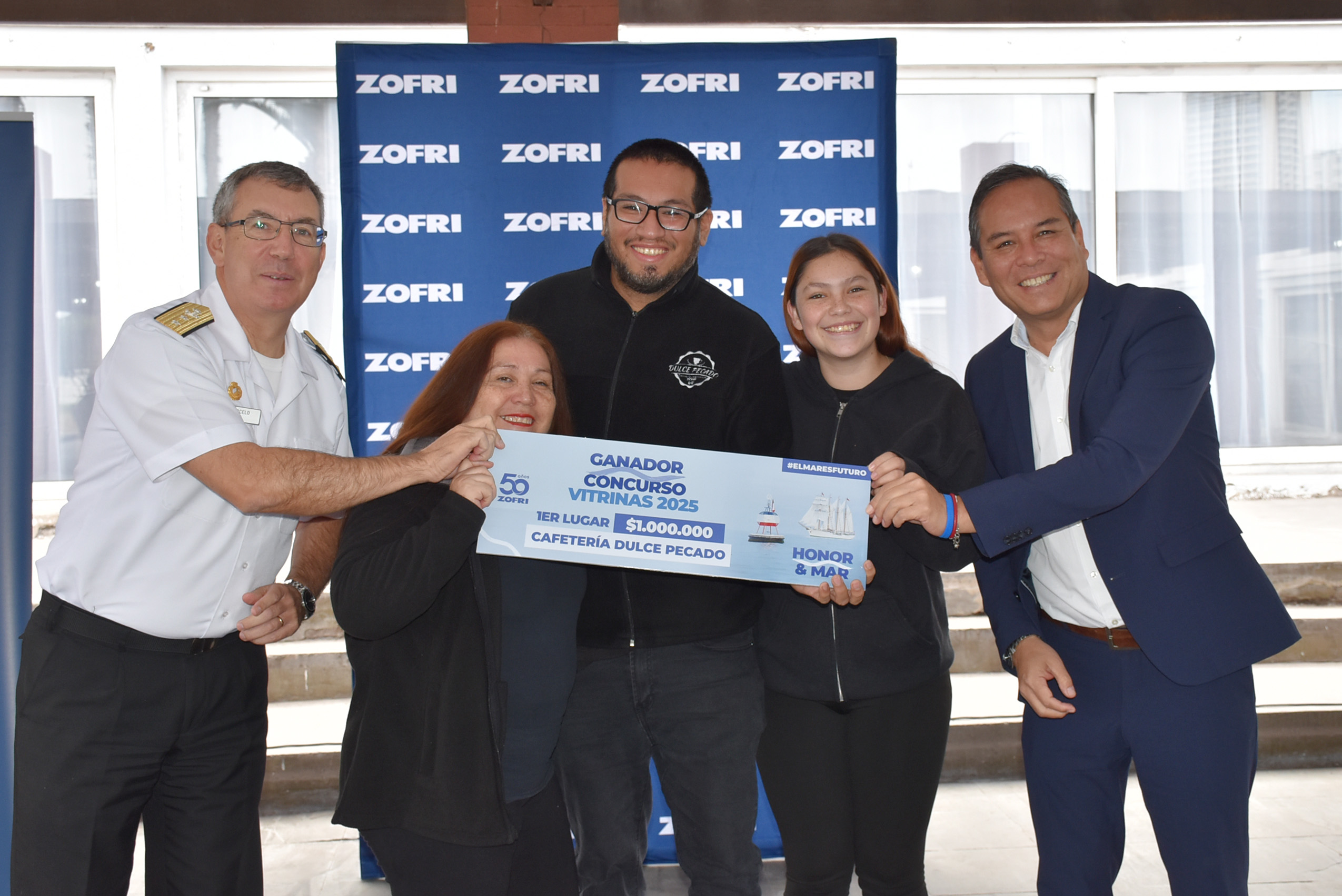 Los representantes de las doce tiendas finalistas del Concurso de Vitrinas 2025 se dieron cita en dependencias de la IV Zona Naval, instancia en la que se conocieron los ganadores de la vigésima primera versión del tradicional certamen organizado por Mall ZOFRI y la Armada de Chile.