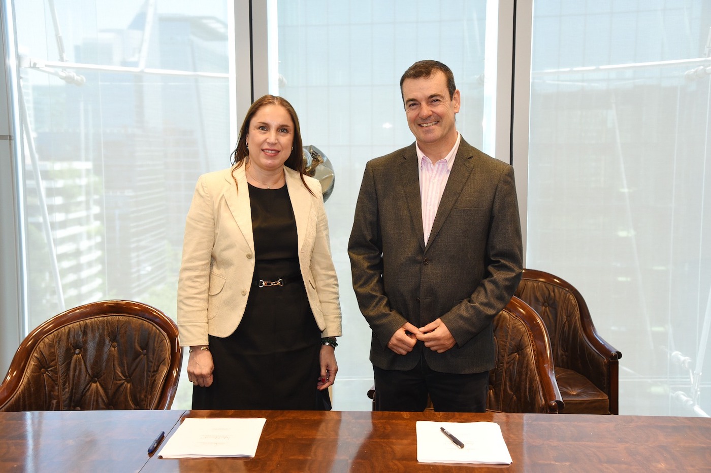 Patricia López, gerenta de Infraestructura del Grupo CAP y Alfredo Solar, gerente regional de Atlas Renewable Energy para Chile y el Cono Sur.