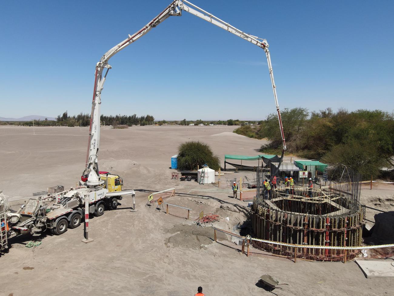 Según informó Luis Recabarren Araya, Jefe del Departamento de Obras de Aguas del Altiplano, actualmente se trabaja en el hormigonado del primer cuerpo de la estructura.