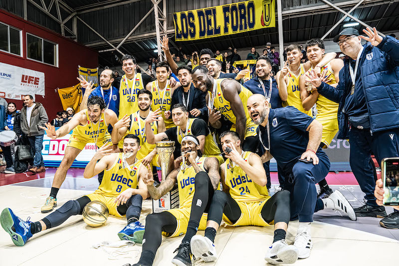 Tras el claxon final, todo fue emoción. El plantel de Colegio Los Leones, aplaudido por su hinchada que repletó y les apoyó hasta el final, recibió sus medallas como vicecampeón. Y luego, uno a uno, los jugadores e integrantes del cuerpo técnico de Básquet UdeC se colgaron la presea que los distingue como los mejores de la temporada.