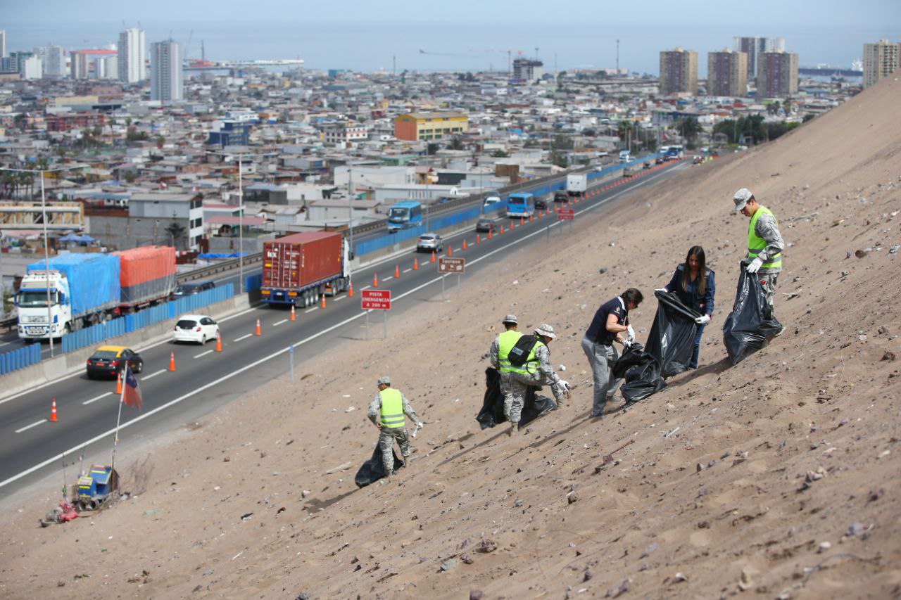 “Lo mejor de todo es que removimos todo el sector y llenamos 60 sacos con basura y algunos escombros, desperdicios, botellas, ropa, electrodomésticos en desuso y colillas de cigarros que sumaron una tonelada con 110 kilos”, sostuvo Zambra, quien informó que el en el ejercicio conjunto entre Cristo Rey, el Gobierno Regional de Tarapacá y la Corporación Tarapacá, participaron el Ejército de Chile, la Fuerza Aérea de Chile, la Armada de Chile, la Municipalidad de Iquique, la Asociación Gremial de Economía Circular, AGEC, Teck, Rutas del Desierto, Camanchaca y miembros del Equipo Gore.
