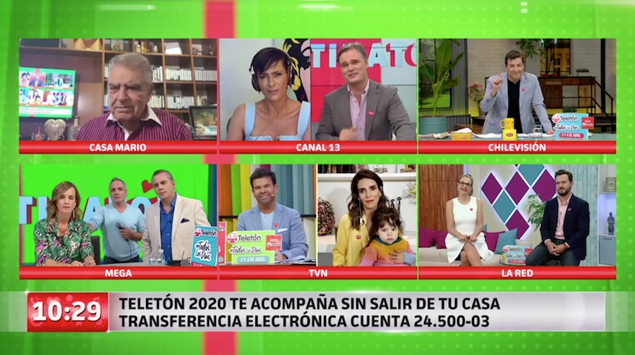 Desde las 10 de la mañana, Canal 13, CHV, Mega, TVN, La Red y Mario Kreutzberger desde su casa, se unieron en un solo programa, para motivar en esta Teletón de unidad, que busca acompañar a los chilenos en estos difíciles momentos.