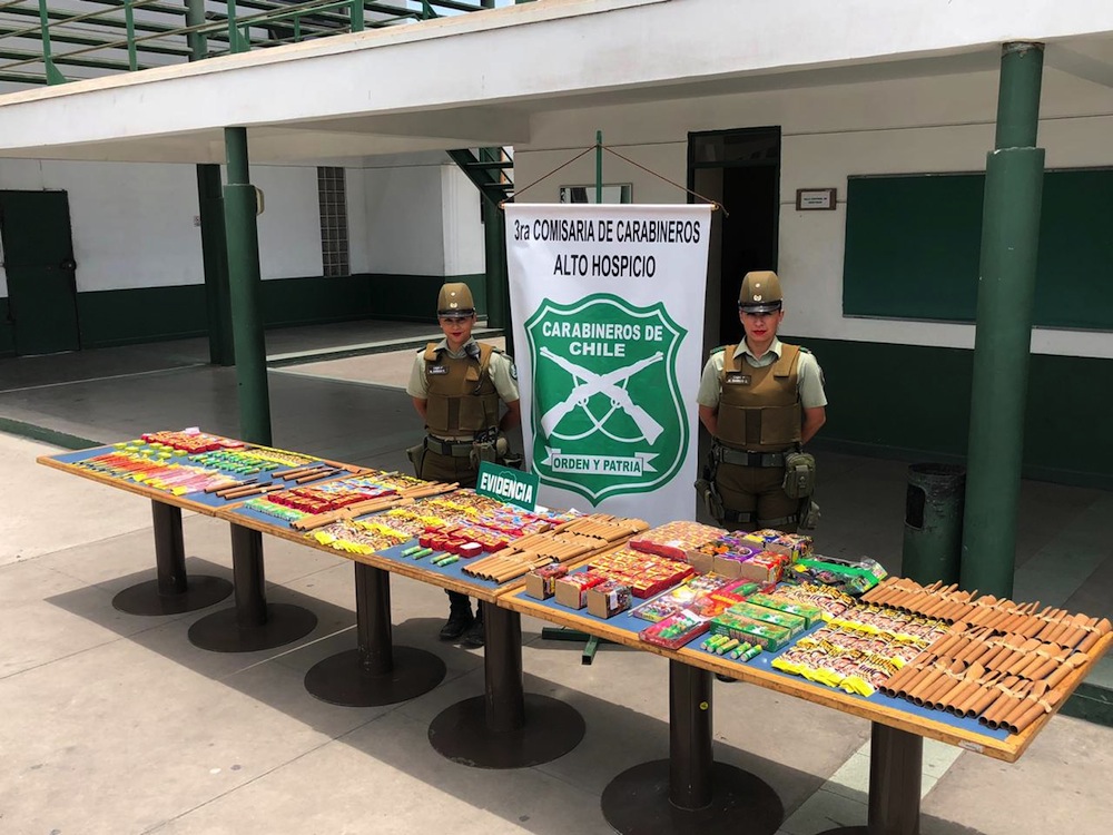 “Carabineros de Chille está de manera activa controlando y fiscalizando en diferentes sectores de la región la venta de estos artefactos con la finalidad de evitar la comercialización clandestina de artículos pirotécnicos que colocan en riesgo la salud de las personas», sostuvo el comisario.