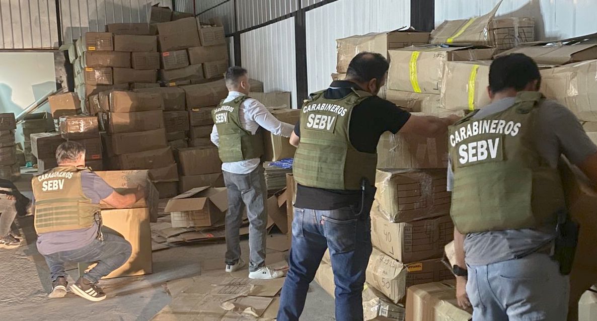 Debido a ello se realizó un operativo que permitió incautar en el lugar 582 cajas con mercaderías y un DVR, deteniendo a tres hombres de 39 y 23 años, nacionalidad boliviana, quienes pasaron a control de detención en el Juzgado de Garantía de Alto Hospicio por el delito de receptación de especies.