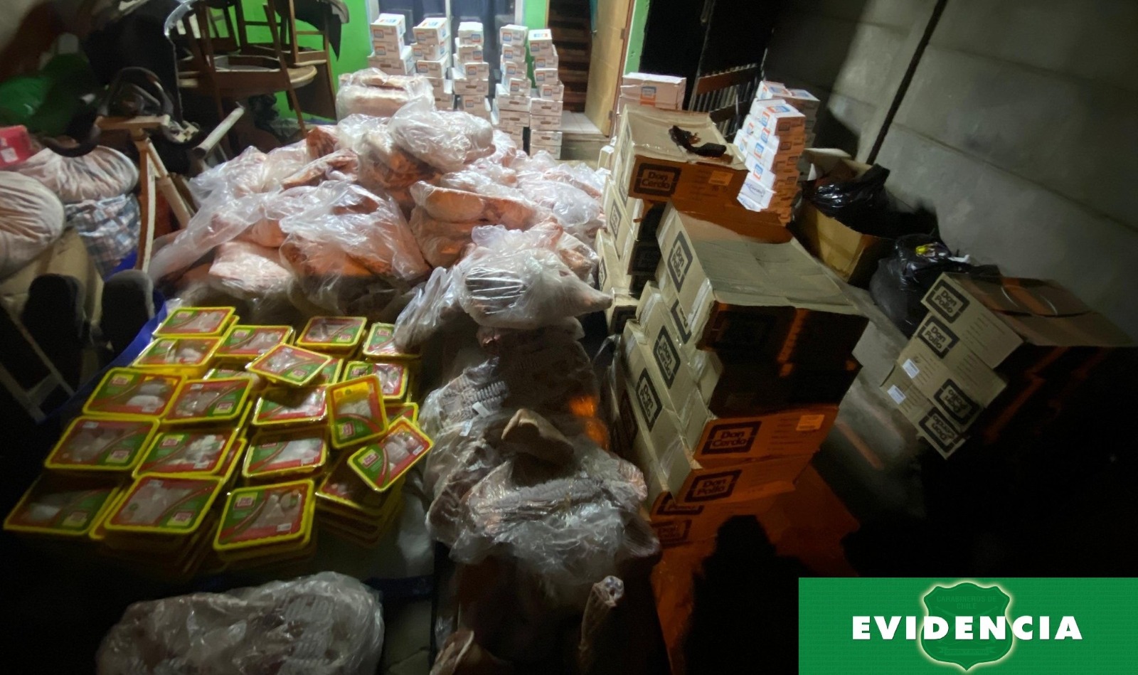En el lugar se incautaron cuatro mil kilos de carne congelada y 14 televisores de distintos tamaños, los cuales habrían sido denunciados en otros de robos ocurridos en días anteriores, todo avaluado en 20 millones de pesos.