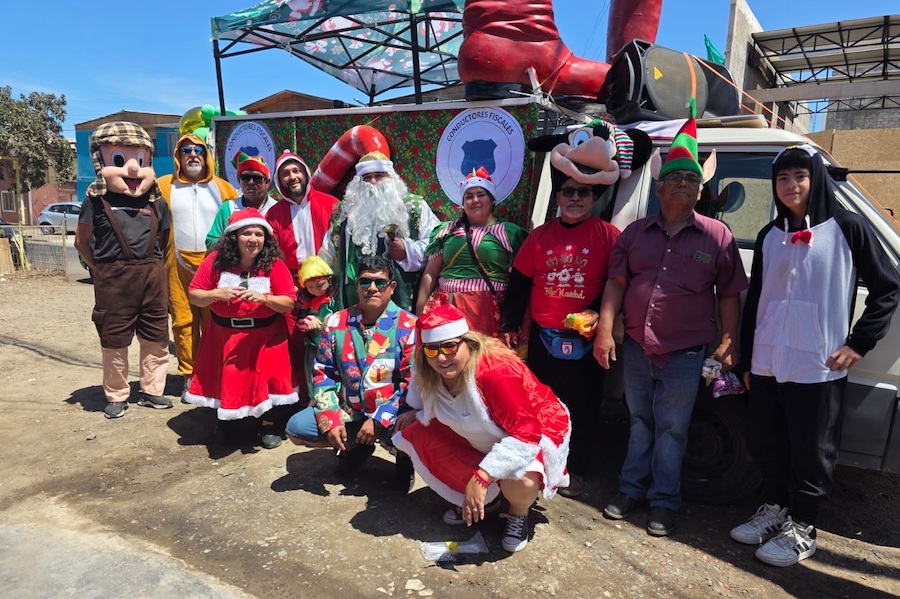 Un colorido recorrido por las calles de Iquique y Alto Hospicio realizó el carro navideño del Centro Social, Cultural y Deportivo “Manos Firmes de Pampa y Mar”, donde un grupo de conductores fiscales llevó no solo alegría a quienes visitó el “Viejito Pascuero” sino que a los cientos de niños y niñas que vieron pasar y disfrutaron de este festivo carro.