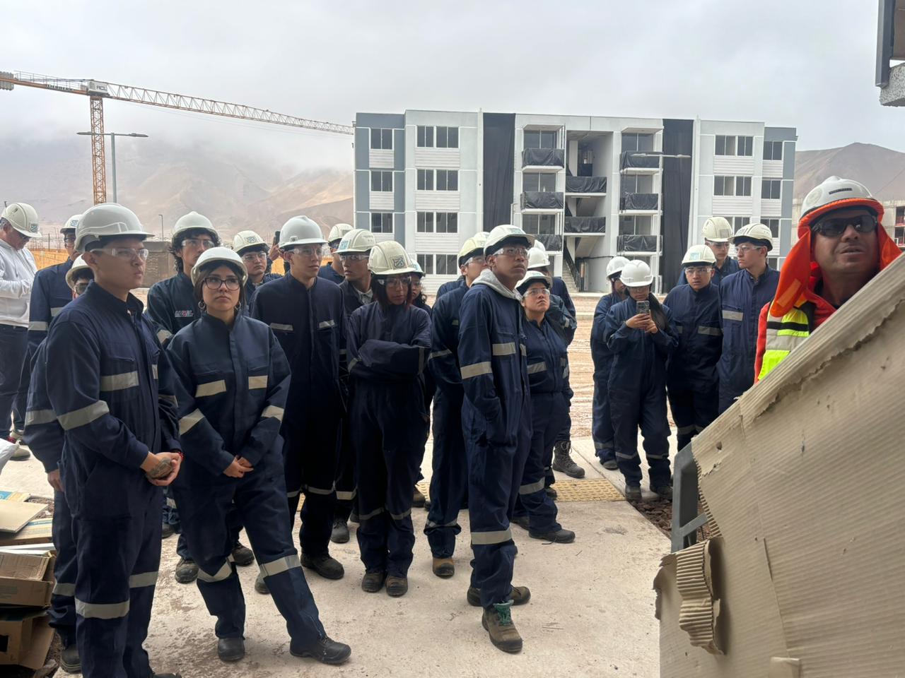 El Consejo Social de la Cámara Chilena de la Construcción Tarapacá realizó una visita junto a estudiantes de la especialidad de Construcciones Metálicas del Liceo Politécnico José Gutiérrez de la Fuente al mega conjunto habitacional Brisas del Tamarugal, ejecutado por la empresa socia ACL Ingeniería y Construcción.