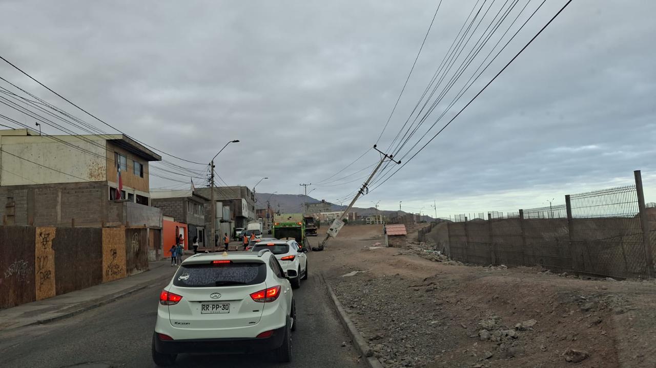 Un vehículo colisionó un poste de la red de media tensión en avenida Gabriela Mistral, esquina calle Canadá, en el sector La Pampa de Alto Hospicio.