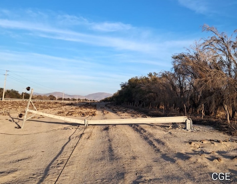 Durante la madrugada de hoy, se produjo un nuevo episodio de robo masivo en la red eléctrica que suministra energía a la comuna de Pica. El incidente tuvo lugar en el sector de Canchones, donde los delincuentes no solo vandalizaron la red, sino que también implementaron medidas disuasorias para retrasar la intervención de Carabineros y del personal técnico de CGE, bloqueando el acceso con ramas y árboles. En su intento por llegar al lugar, una camioneta de CGE sufrió daños en sus neumáticos.