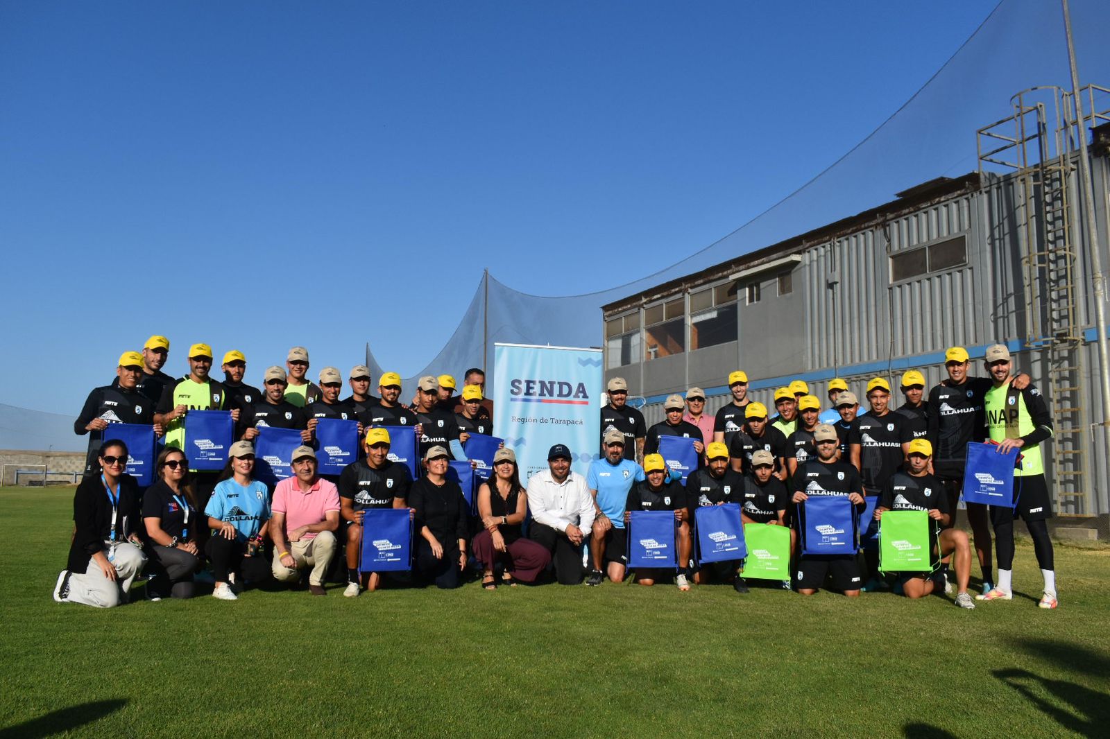 En compañía del delegado presidencial regional, Daniel Quinteros; la directora de SENDA Tarapacá, Alejandra Zúñiga; la seremi del Deportes, Vania Llantén; y el director regional (s) de IND, Esmenar Andrade, el plantel en pleno del cuadro celeste liderado por su capitán Hans Salinas y su director técnico, Miguel Ramírez, invitó a la comunidad, sobre todo a los jóvenes de la región, a realizar actividades deportivas.