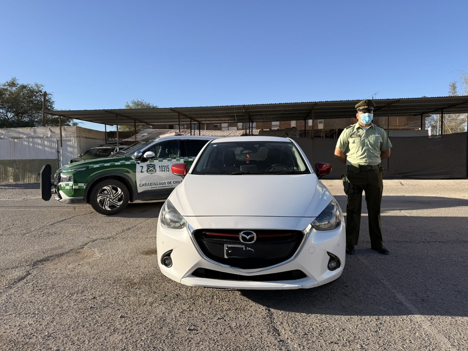 Por ello se inició un seguimiento controlado desde la ruta 5 que finalizó en el poblado de Tarapacá, donde interceptaron el vehículo, percatándose que mantenía la ventana trasera quebrada y que registraba encargo por robo de vehículo motorizado vigente, realizado en la 3ra comisaría de Alto Hospicio.