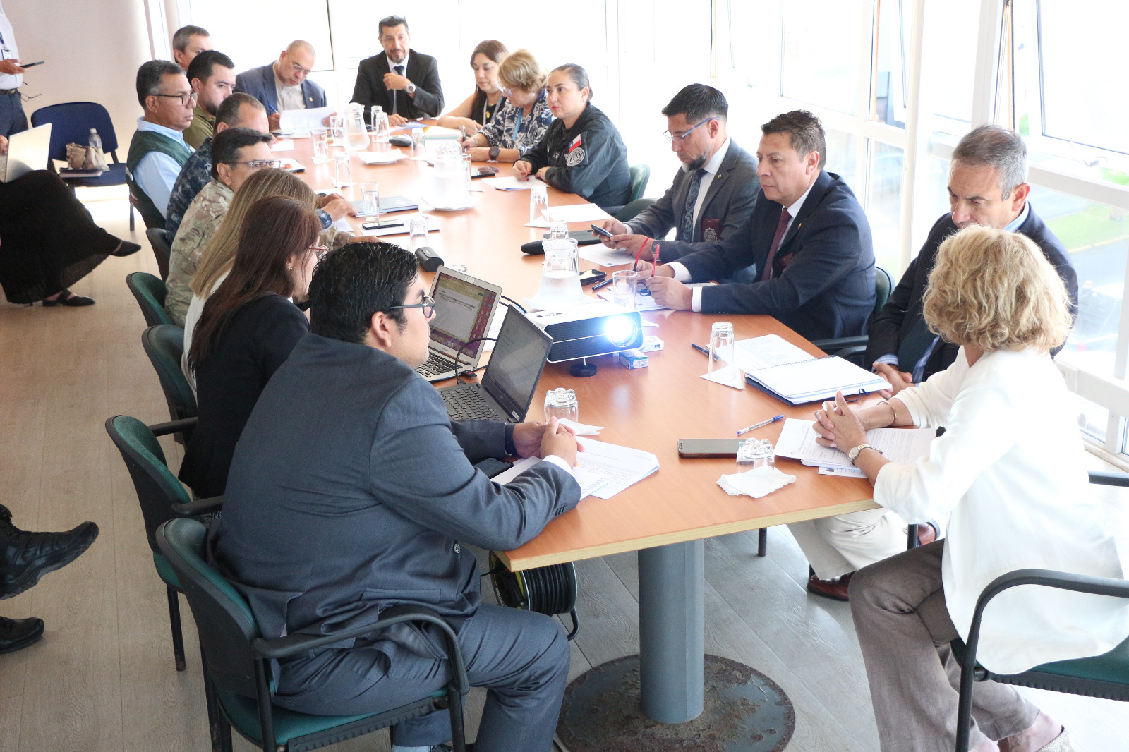 A la reunión asistieron la delegada presidencial regional de Tarapacá, Adriana Tapia; comisionado presidencial Alberto Soto; seremi (s) de Seguridad, Jaime Cejas; Prefectura de Iquique, coronel Diego Salas; jefe de la Primera Región Policial Tarapacá, prefecto inspector Mauricio Jorquera; gobernador marítimo, capitán de navío Gabriel Núñez; fiscal Carlos González, jefe del Sistema de Análisis Criminal y Focos Investigativos de la Fiscalía de Chile; directora del Servicio de Registro Civil e Identificación, Ema Moreno; director de Conaf, Víctor Quezada; por Gendarmería, Evelyn Ibáñez; por Servicio Nacional de Aduanas, Frank Hanshing; por Servicio Agrícola y Ganadero, Carlos Castillo.