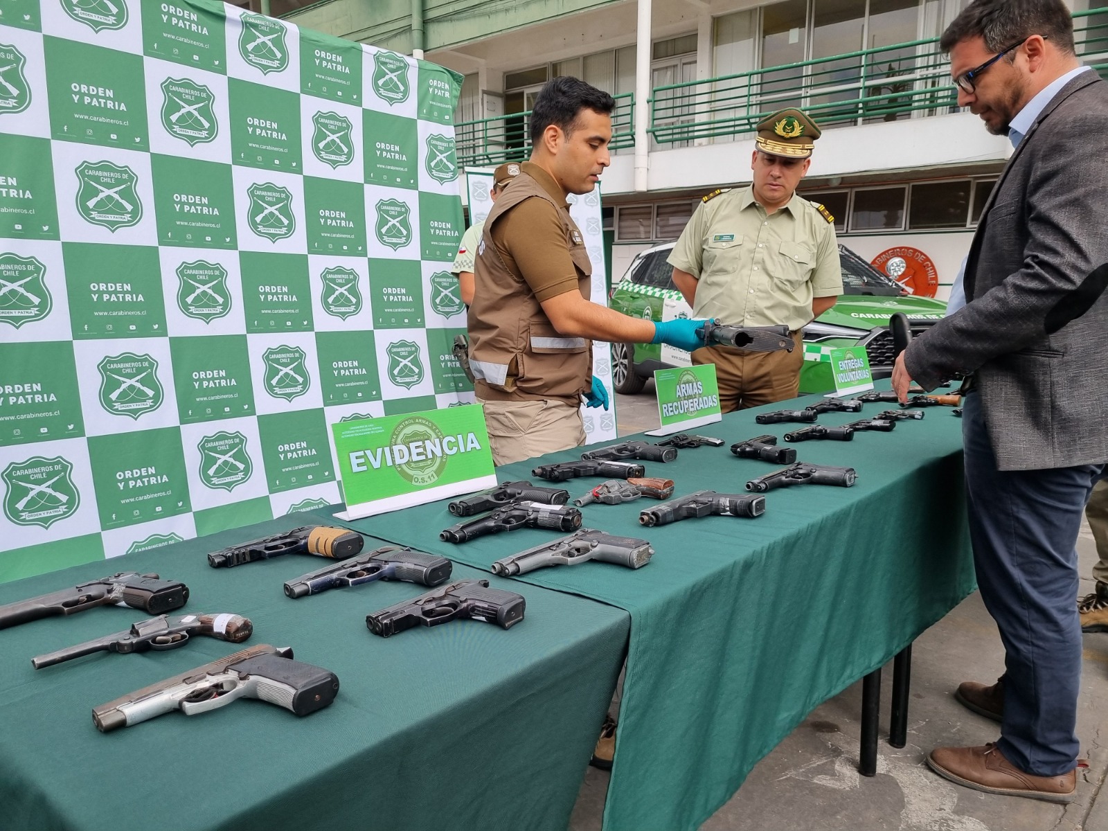 En esa línea, el delegado destacó que Carabineros durante marzo incautó 84 armas, “dieciocho de ellas armas de fuego y también tenemos algunas armas de fogueo que han sido adaptadas para poder disparar”.