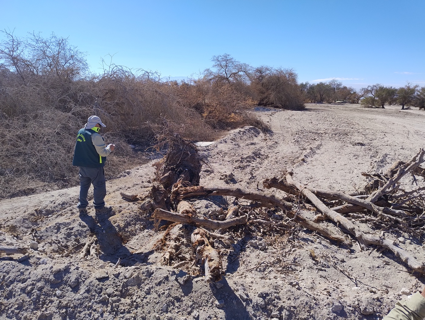 El cargo se refiere a la ejecución de obras al interior del área silvestre protegida del Estado, relativas a la apertura y ejecución de caminos, mediante el despeje del terreno, el descepado y tumbado de 26 ejemplares de árboles (20 tamarugos y 6 algarrobos), sin contar con una Resolución de Calificación Ambiental (RCA) que lo autorice, tal como lo establece la Ley 19.300, de Bases Generales del Medio Ambiente.