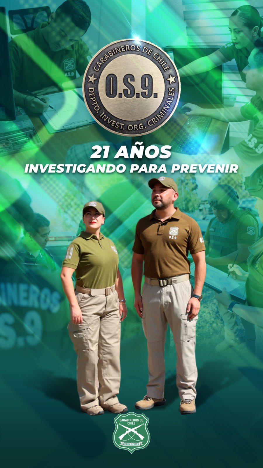Este 5 de octubre el Departamento Investigación de Organizaciones Criminales (OS9) de Carabineros celebró su 21° aniversario desde su creación dedicada al desarrollo de investigaciones especializadas para desarticular bandas, organizaciones criminales y delitos de alta complejidad.