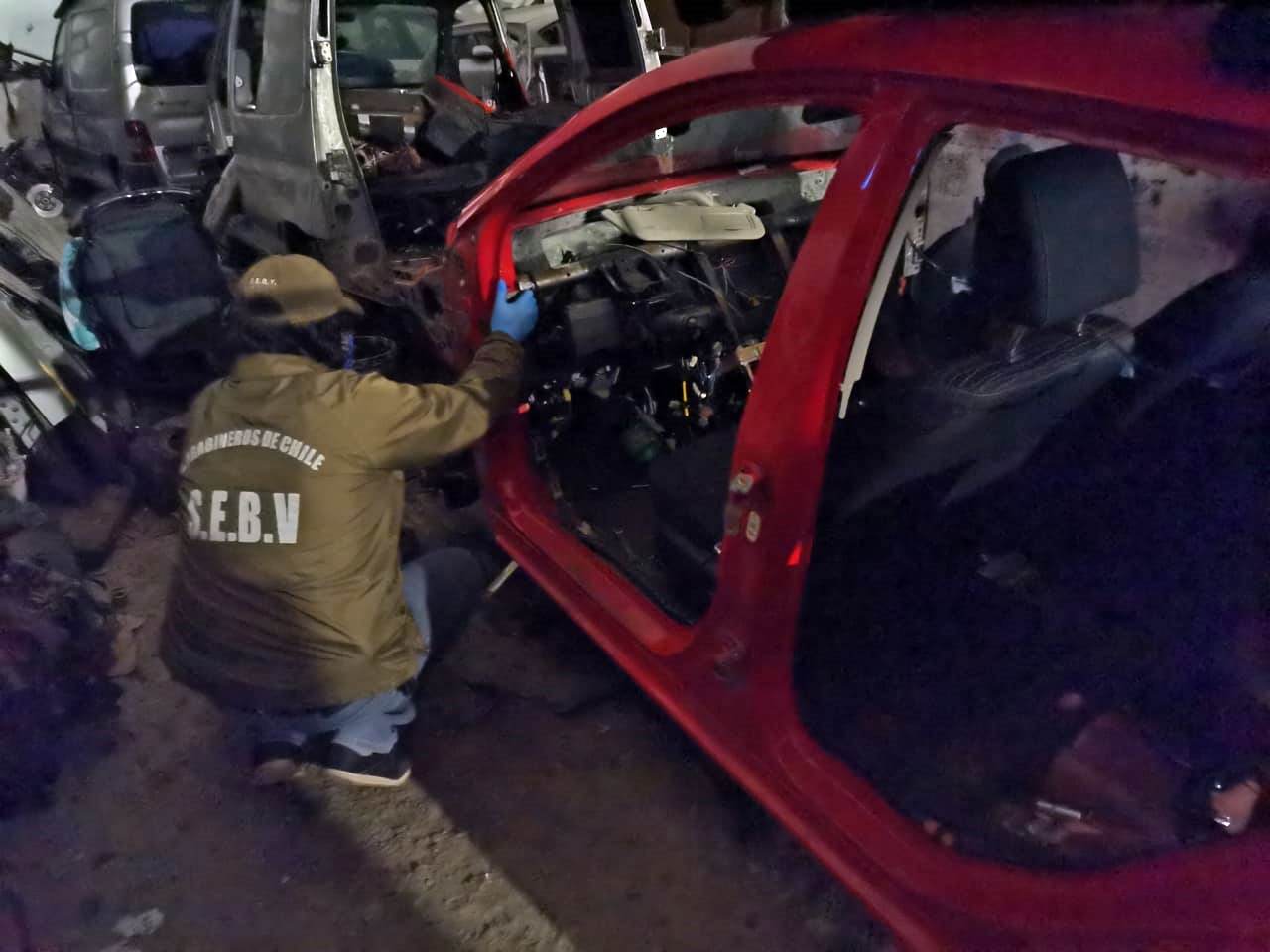 Al interior los uniformados encontraron cuatro vehículos que se encontraban en estado de desarme de su estructura, procediendo a efectuar la revisión alfanumérica del chasis y motor, corroborando que dos de los vehículos registraban encargos vigentes por robos y hurto, procediendo a la detención de E.S.A., quien por instrucción del fiscal pasó a control de detención en horas de esta mañana.
