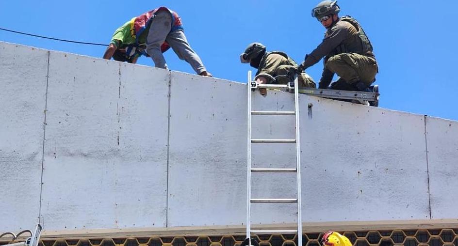 El trabajo coordinado entre Carabineros del GOPE Tarapacá y el Cuerpo de Bomberos permitió bajar desde la techumbre de la Iglesia Campanario a un hombre que se encontraba en el lugar.