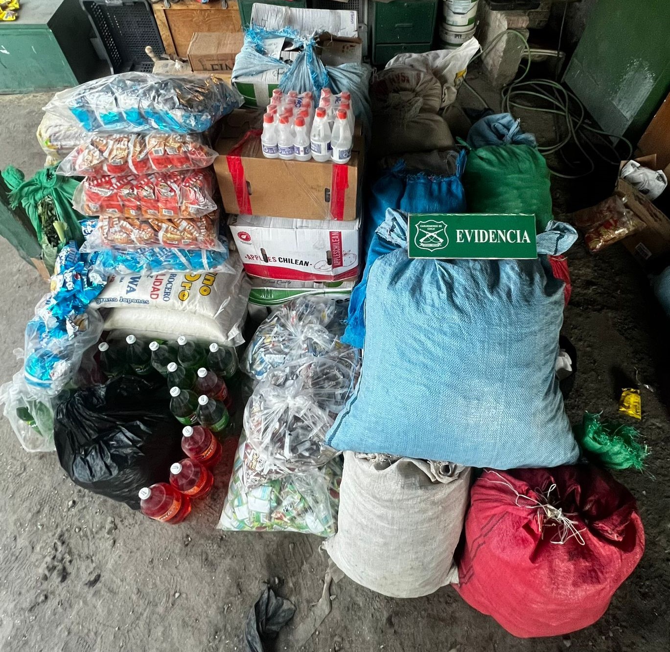 Se trasladó a ambos individuos hasta la tenencia Quillagua, donde se realizó el conteo de las especies, entre las que se encontraban 100 kilos de arroz, 22 kilos de fideos a granel, 18 sacos de papas yuca, oca y normal, habas, ají locoto, huesillos secos, ají verde, arvejas verdes, quinoa, maíz y quesos a granel.