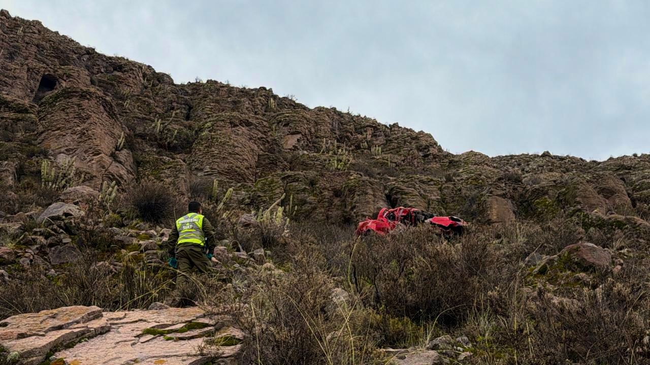Anoche cerca de las 22 horas, se registró un accidente donde dos ocupantes de un vehículo resultaron muertos al caer a un barranco, a la altura del km 72 de la Ruta 15 CH. Otros dos ocupantes resultaron heridos y fueron trasladados al centro asistencial. El vehículo habría rodado unos 600 metros.