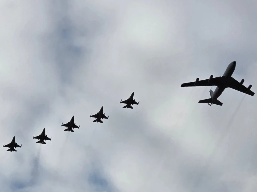 (Fotografía: Formación de aviones F-16C/D Block 50 y KC-135E Stratotanker de la FACh en su arribo a la base aérea de Natal. Firma Instagram cruzex.2024)