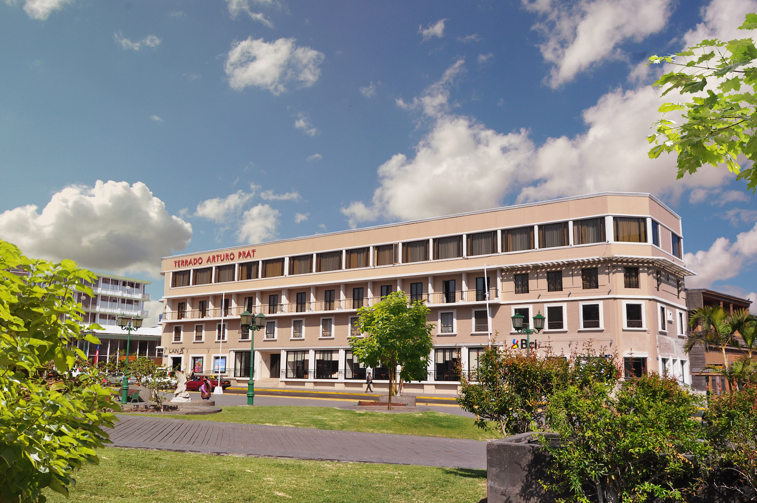 El clásico hotel Terrado Arturo Prat, ubicado en el casco histórico de la ciudad de Iquique, reabre sus puertas con tarifas exclusivas de reapertura luego de un cierre en época de pandemia a una empresa privada. El hotel está emplazado frente a la plaza Arturo Prat y a la icónica torre del reloj de la ciudad.