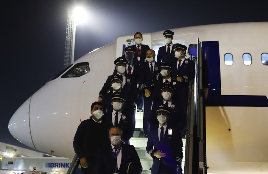 Las mascarillas fueron transportadas en un avión operado por LATAM Cargo cuya operación requirió de más de trece equipos multidisciplinarios que planificaron y coordinaron el vuelo, así como de 15 miembros de tripulación de mando que fueron los responsables de llevar a cabo el viaje de 57 horas y traer de regreso a Chile los insumos para el personal de salud.