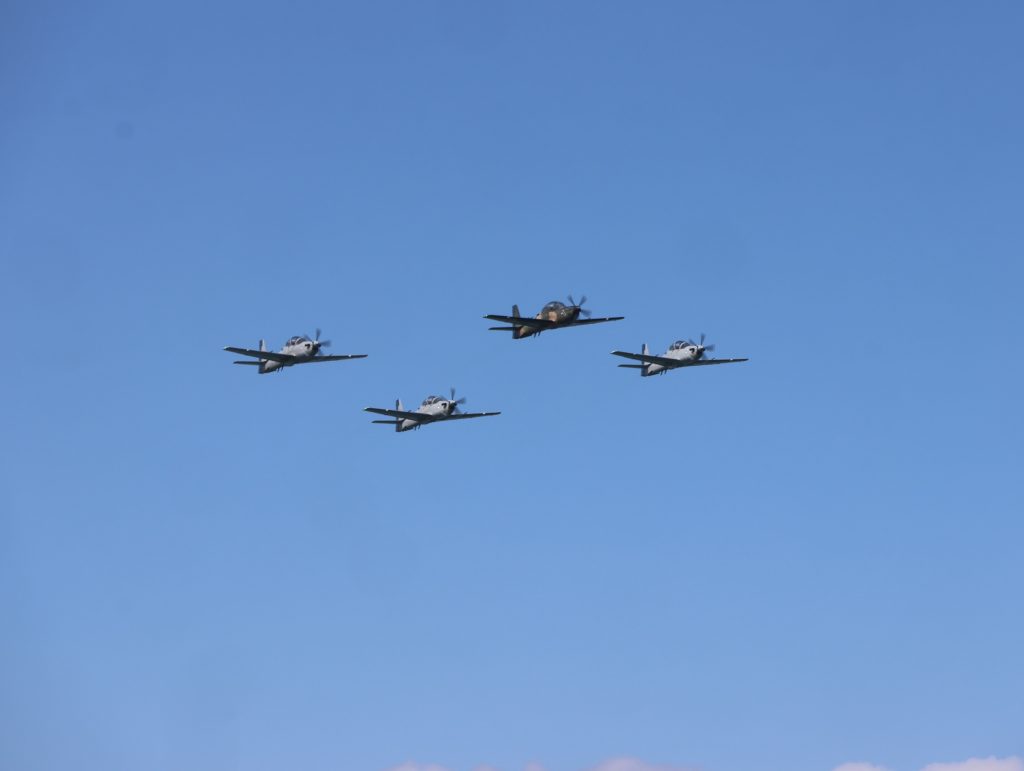 Para concluir esta brillante ceremonia, se realizó el desfile aéreo a cargo de los aviones A-29 Super Tucano de dotación del Grupo de Aviación Nº1 y en tierra delegaciones de las Fuerzas Armadas y de Orden.