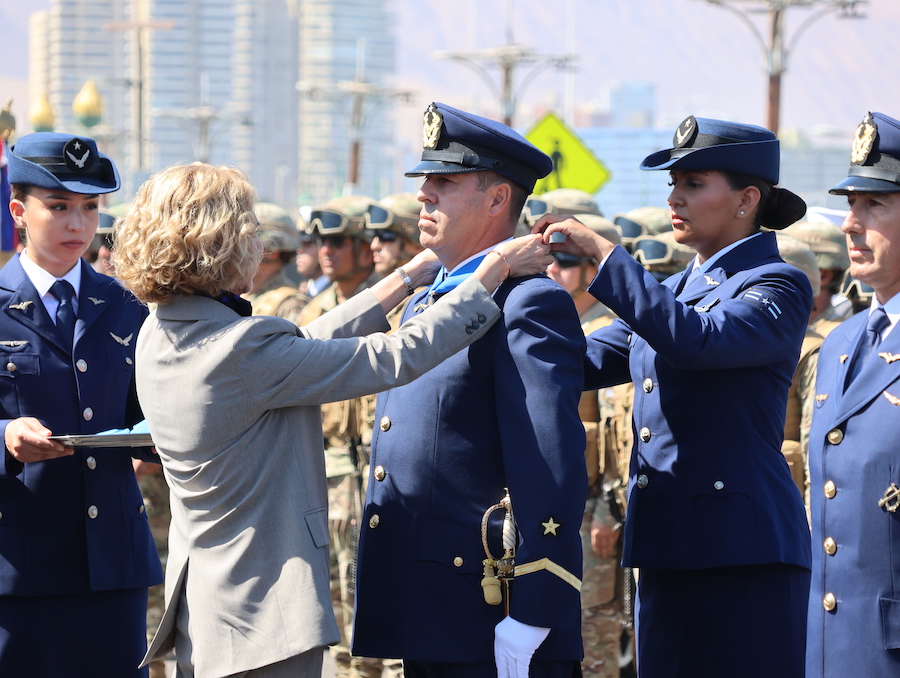 En tanto, la Delegada Presidencial Adriana Tapia, impuso la condecoración al “Gran Mérito Militar de la Fuerza Aérea de Chile” a los Suboficiales Mayores que cumplieron los 34 años en la Institución.