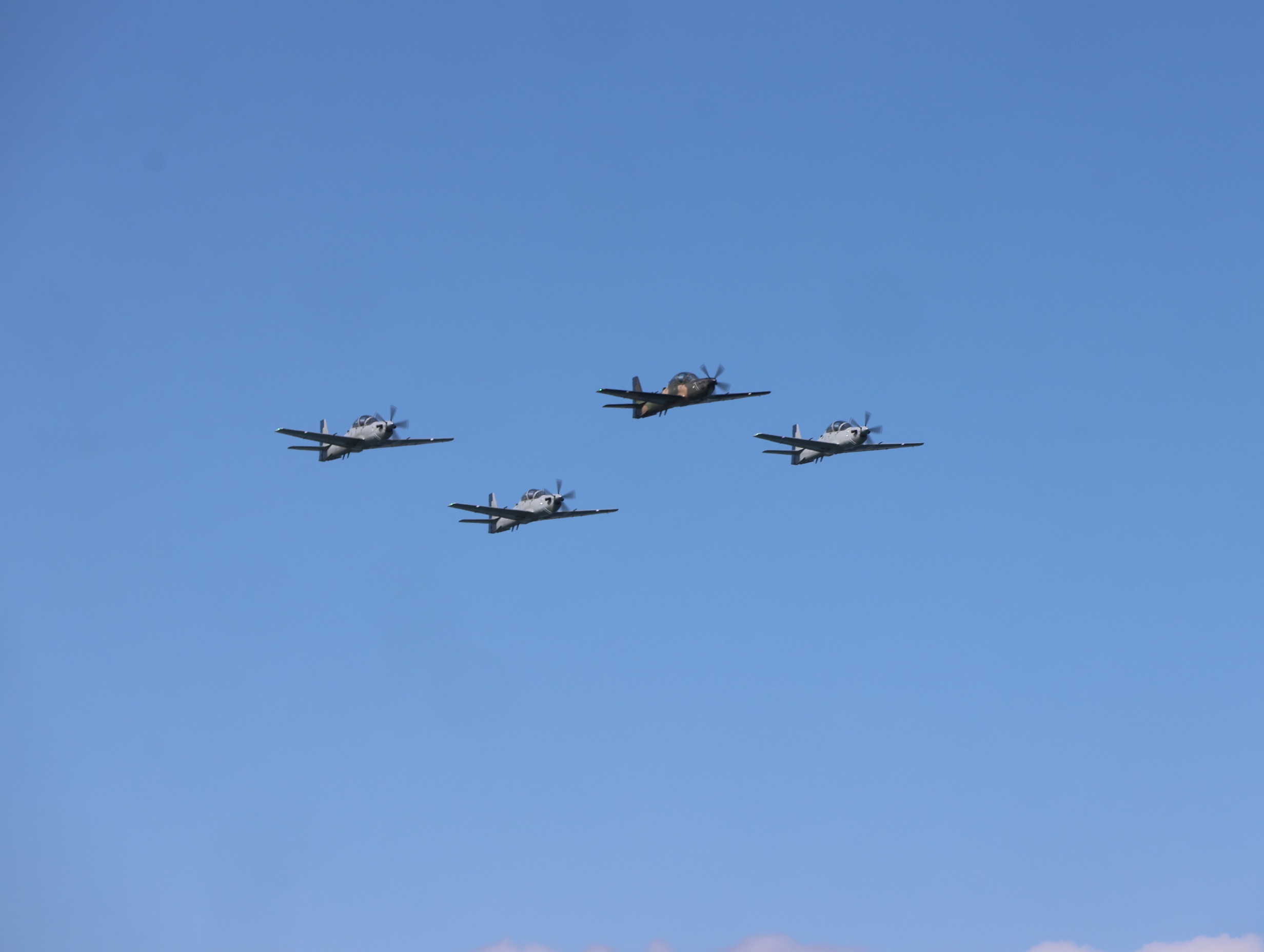 Para concluir esta brillante ceremonia, se realizó el desfile aéreo a cargo de los aviones A-29 Super Tucano de dotación del Grupo de Aviación Nº1 y en tierra delegaciones de las Fuerzas Armadas y de Orden.