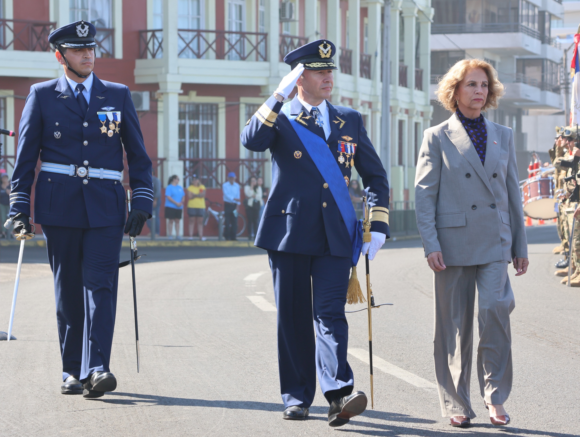 La ceremonia, inició con los honores correspondientes a la Delegada Presidencial Regional, Adriana Tapia Cifuentes, quien junto al Comandante en Jefe de la Iª Brigada Aérea, General de Brigada Aérea (A) Guillermo Pino Maggi, revistaron la Unidad de Formación.