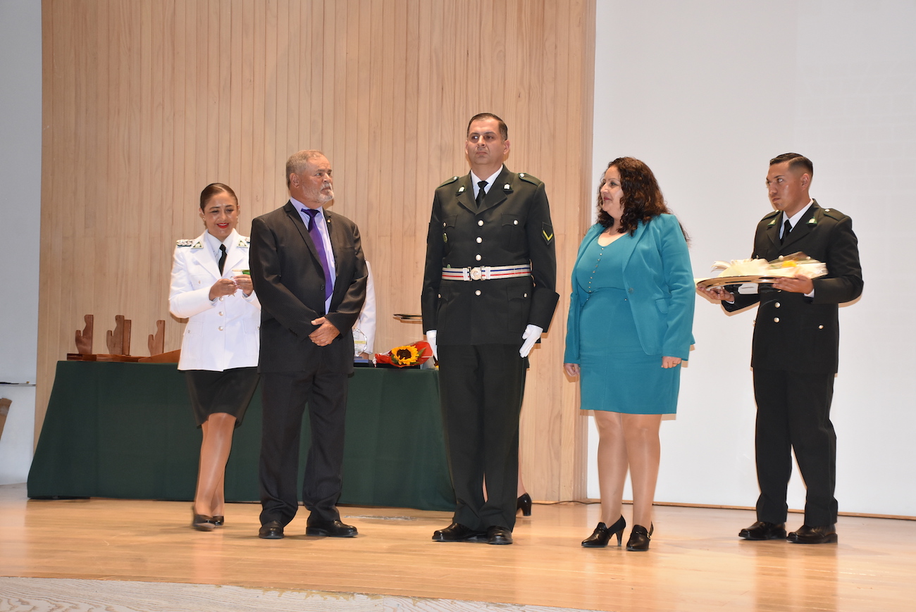 Luego pasó al frente de las autoridades, quien ascendió a sargento primero, Orlando Romero Solís y al grado de suboficial, Pedro Valenzuela Rojas.