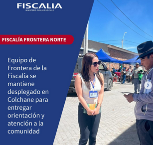 La Fiscalía Frontera Norte de Colchane ha realizado un importante despliegue territorial, tanto en terreno como en instancias de coordinación con diversas instituciones. Durante sus turnos semanales, los abogados y funcionarios se han constituido junto al Ejército y Carabineros en la feria y paso ancestral de la zona fronteriza, donde han dialogado con la comunidad, entregando orientación directa y resolviendo dudas sobre el sistema penal.