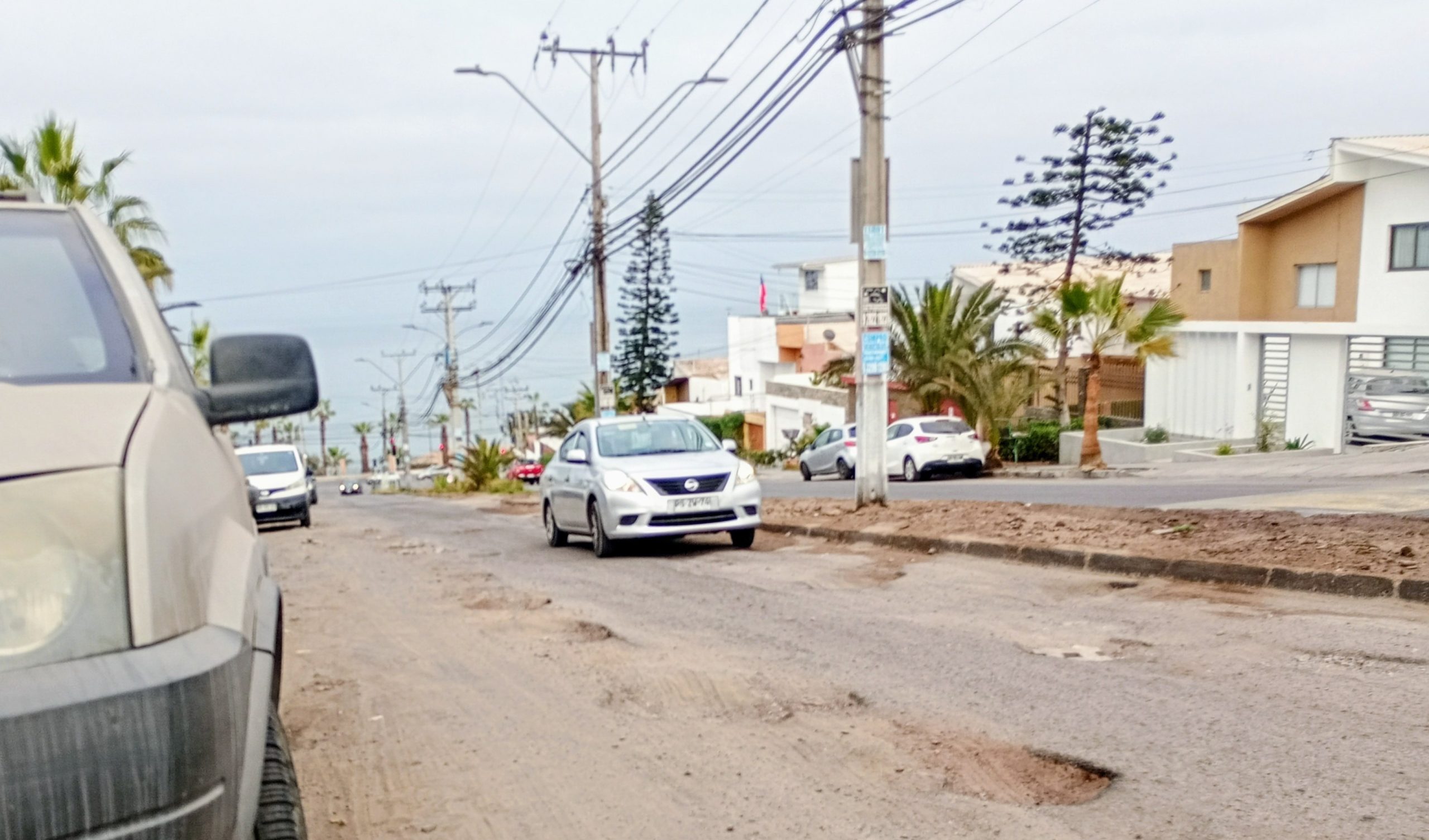 Ese tramo (en la fotografía) es realmente calamitoso. El estado de la calzada muestra una imagen de abandono en una ciudad que dice ser turística, donde muchas autoridades han asistido a otros países para promover una ciudad que está en pésimo estado en cuanto a: calles, pasajes y avenidas; mostrando un sector central colmado de rayados, ventanas tapiadas, basura, postes oxidados, postes «plagados» de cables, plazas con bancos rayados, postes que no encienden, rucos, etc.