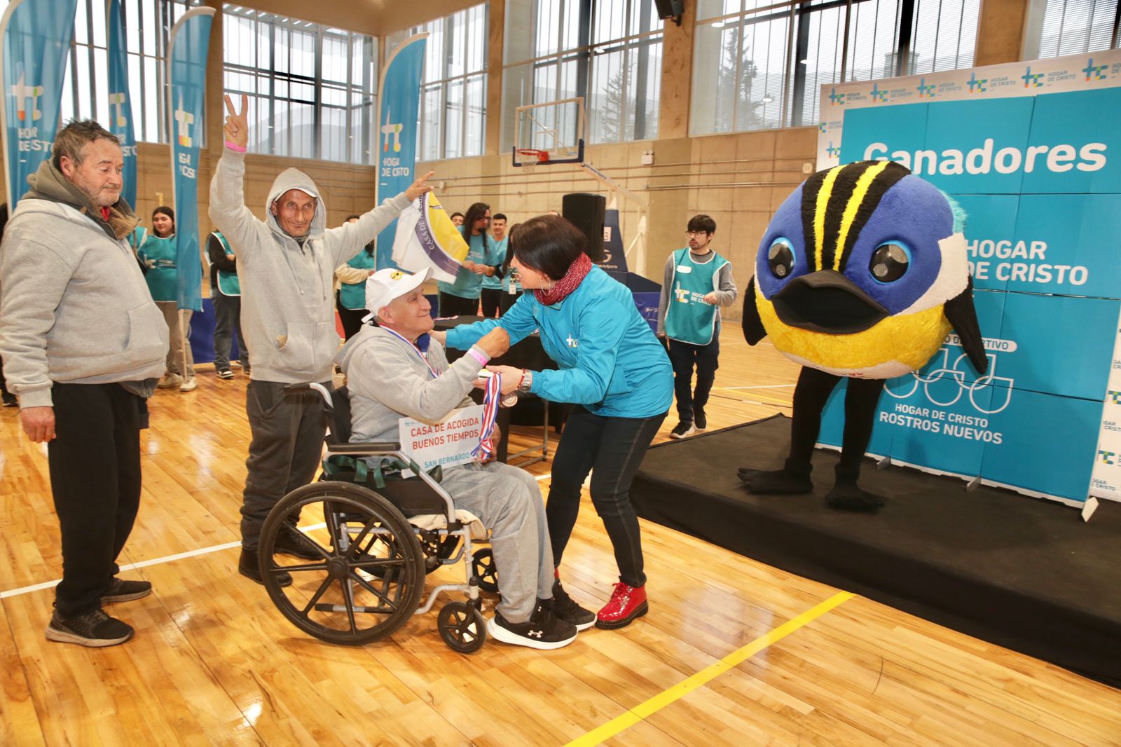 Con música, baile y pompones en las tribunas, se gestó una fiesta deportiva que juntó a diferentes líneas de acción de Hogar de Cristo, con los focos puestos en adultos mayores, discapacidad mental y situación de calle. En la Liga Acoger, los ganadores fueron: en primer lugar, “Los Tigres de Josse”, de la Casa de Acogida Josse Van Der Rest; en segundo lugar, “Los Halcones”, de la Casa de Acogida de San Bernardo; y en tercer lugar, “Los Toros de Vivienda”, conformado por participantes del programa Vivienda Primero.