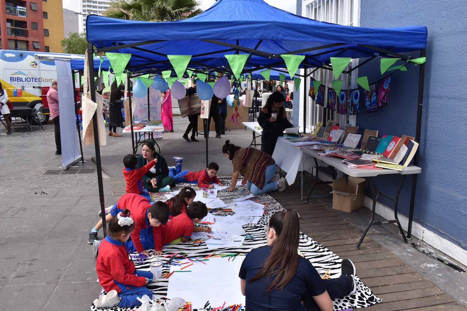 Durante la jornada, también estuvo presente el equipo de la Biblioteca Pública N°305 de Alto Hospicio, con el bibliomóvil para ofrecer un punto de lectura gratuito para la comunidad.