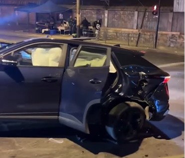 A continuación, la banda huyó del lugar a bordo del vehículo del afectado, el cual fue más tarde detectado por Carabineros en el centro de la ciudad, iniciándose en ese momento una persecución que concluyó cuando el vehículo sustraído colisiona otro automóvil en la intersección de calle «Andrés Sabella» y Sucre.
