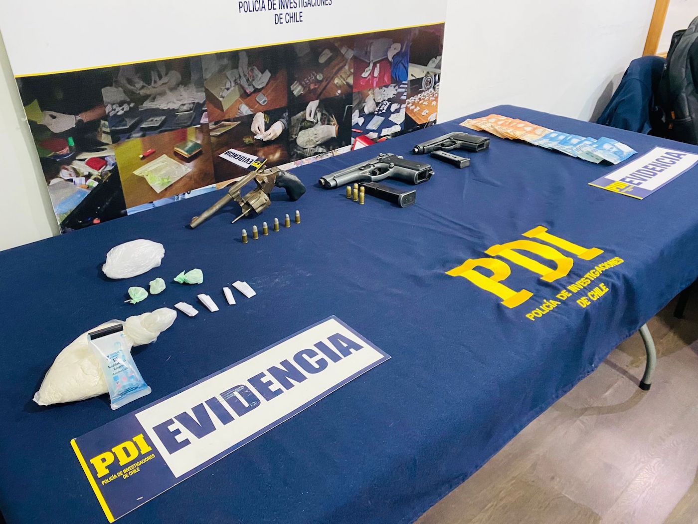 Además, se incautaron tres armas de fuego, siendo una de ellos un revolver, y las otras dos a fogueo adaptadas para el disparo, con sus respectivas municiones; y diversa documentación de interés criminalístico.