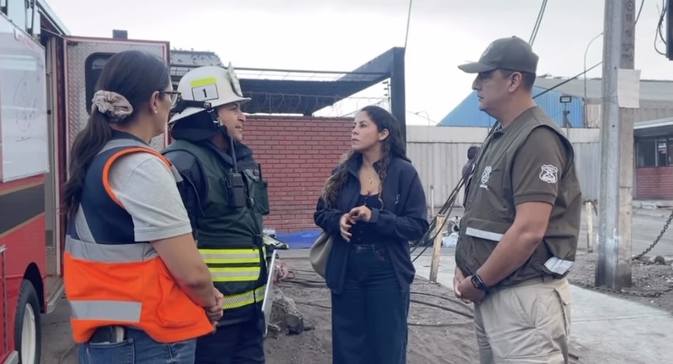 La fiscal Camila Albarracín se constituyó durante este miércoles en el sector del barrio industrial de la Zona Franca de Iquique para instruir en terreno las diligencias investigativas destinadas a esclarecer las circunstancias de un incendio que afectó a galpones del lugar.